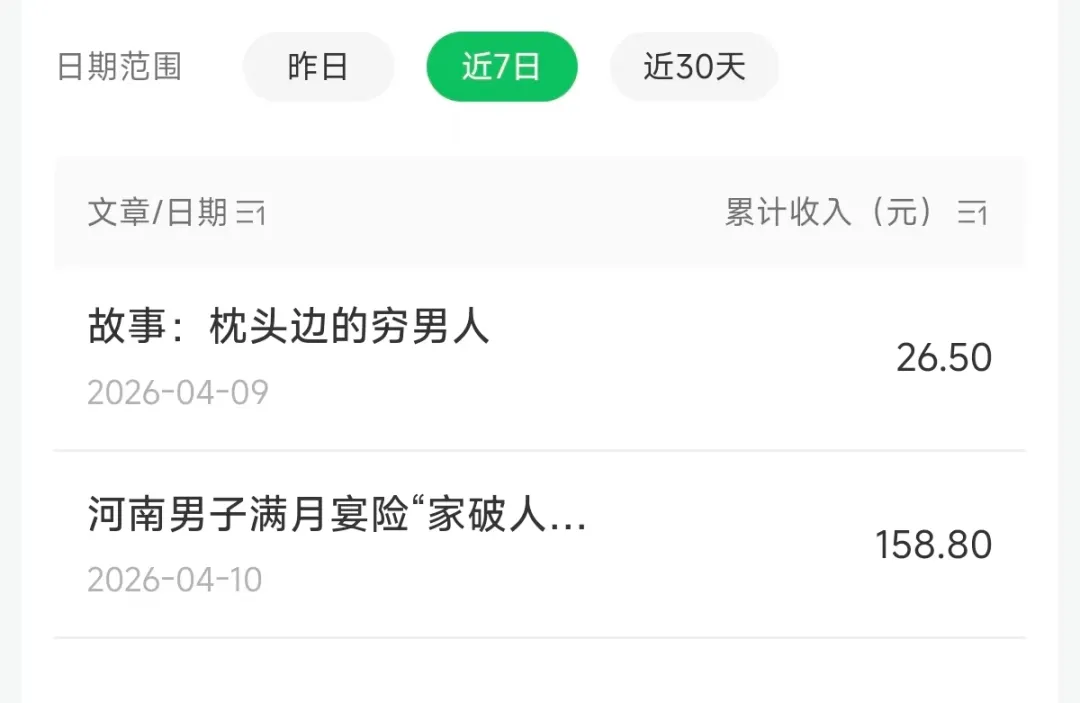 试想你一个从零做起的小白,没什么粉丝,阅读量大概率就只有几十,好一点的就是几百,流量主能够产生的收益,每天也就几分钱,几毛钱。
