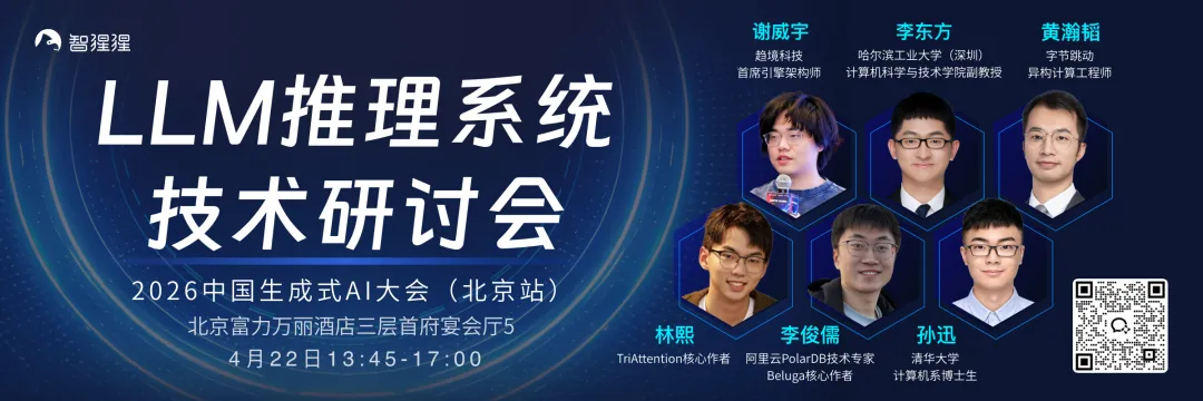 4月22日下午,TriAttention核心作者林熙,趋境科技首席引擎架构师谢威宇,字节跳动异构计算工程师黄瀚韬等6位专家和研究人员将在2026中国生成式AI大会同期LLM推理系统技术研讨会带来分享和Panel讨论。其中,主讲人林熙将以《长上下文推理中KV Cache压缩的新思路:TriAttention的方法设计与思考》为主题进行分享。
