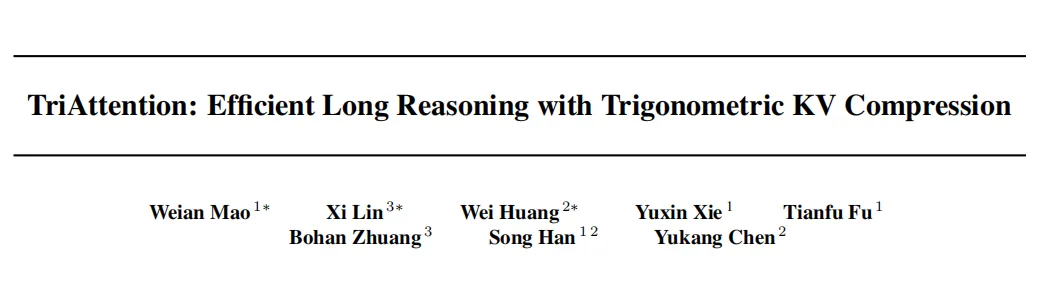 针对上述痛点,MIT韩松团队联合英伟达、浙江大学提出TriAttention方法,转向 RoPE 编码前空间,发现并利用 Q/K 向量围绕固定非零中心高度集中的内在特性,通过三角级数较准确地刻画/重建注意力的距离偏好,摆脱对短期观测窗口的依赖。该方法融合三角级数得分与范数得分,通过集中度自适应加权实现稳定的 KV 重要性评估。实验结果表明,在 Qwen3-8B 的 AIME25 实验中,TriAttention 在与 Full Attention 等精度设置下,实现了 2.5× 吞吐提升或 10.7× KV 内存缩减,精度显著超越 SnapKV、R-KV 等主流基线,附录进一步展示了在单张 RTX 4090(24GB)上部署 AWQ INT4 的 Qwen3-32B 运行 OpenClaw 多轮任务时,full attention 会 OOM,而 TriAttention 可以在预算内完成任务。