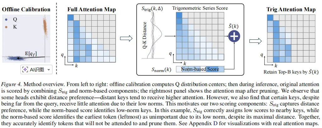 (3)最后据此构造融合距离、方向与模长信息的 key 打分函数,并配合高效剪枝实现在线 KV 压缩。