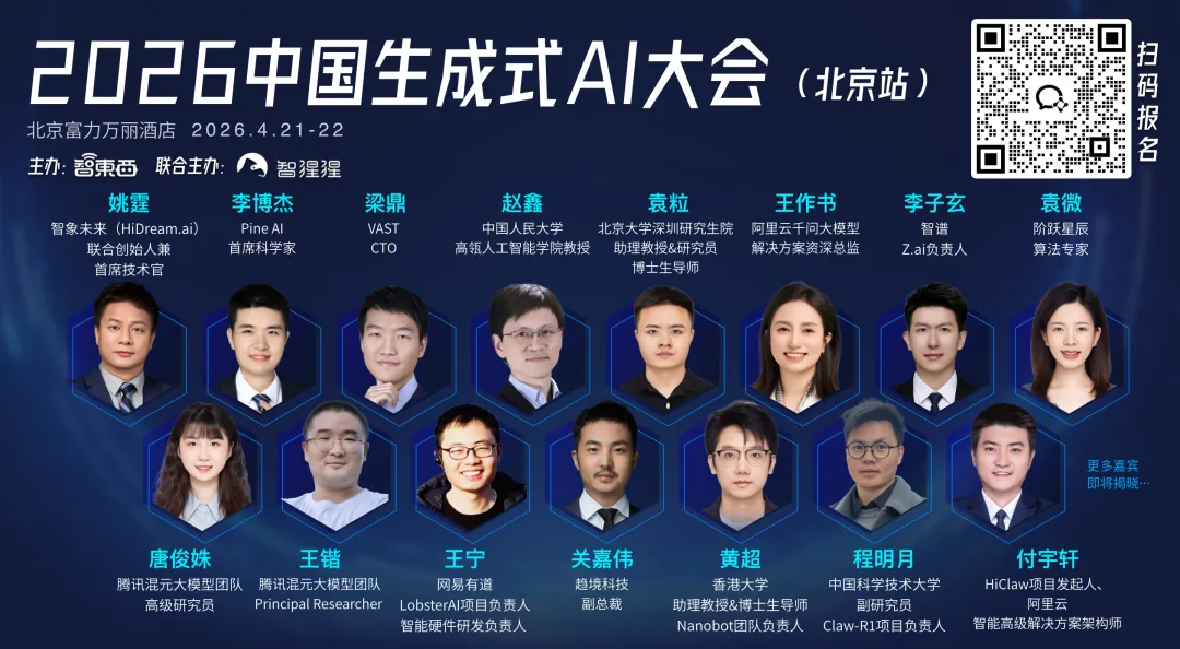 4月21-22日,智猩猩主办的2026中国生成式AI大会将举行,设有开幕式,AI算力基础设施、大模型、AI智能体3大专题论坛,以及OpenClaw、LLM强化学习、大模型记忆等6场技术研讨会。