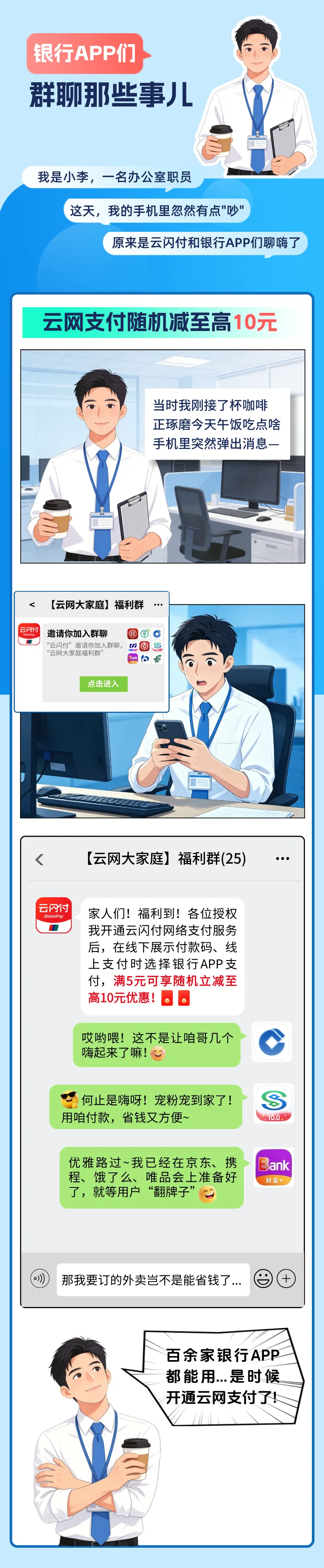 揭秘!至高减10元这事儿,让百余家银行APP“聊”嗨了~具体活动内容往下看云网银行APP支付有优惠这一顿早餐、一杯奶茶钱 说不定就帮你省出来了!下次付款前,记得先打开银行APP试试没准“随机惊喜”就是你的哦~