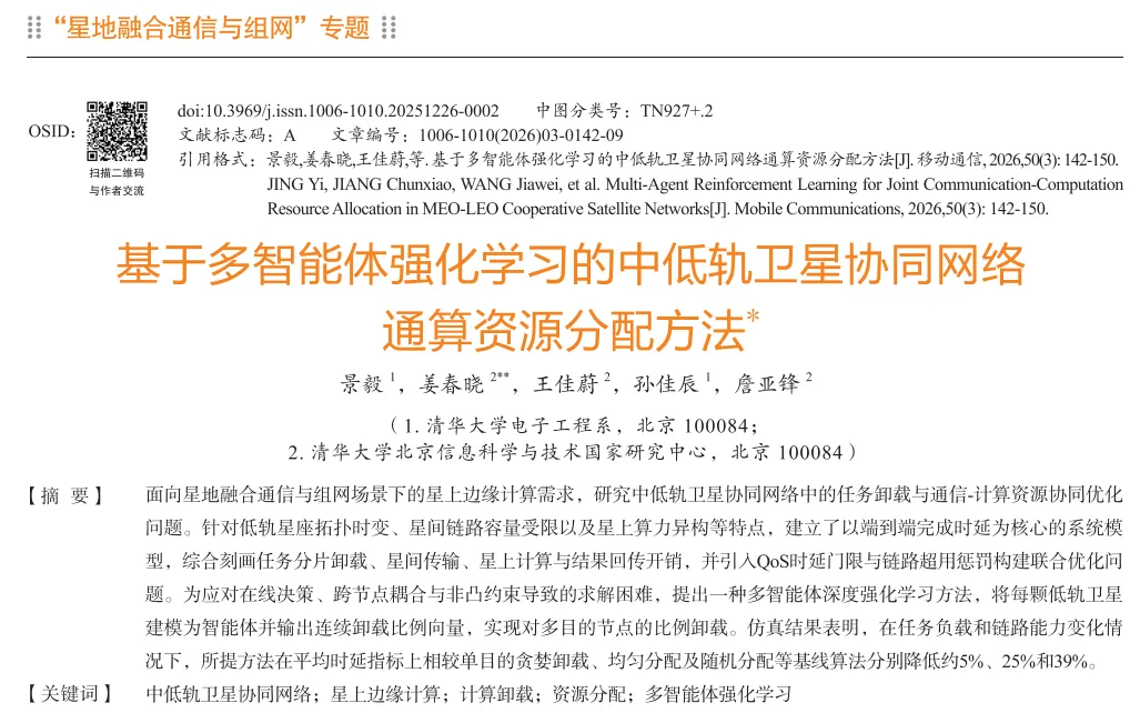 基于多智能体强化学习的中低轨卫星协同网络通算资源分配方法
