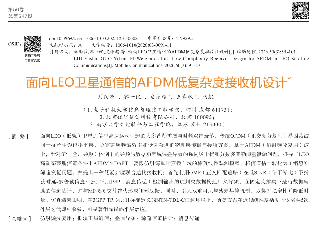 面向LEO卫星通信的AFDM低复杂度接收机设计