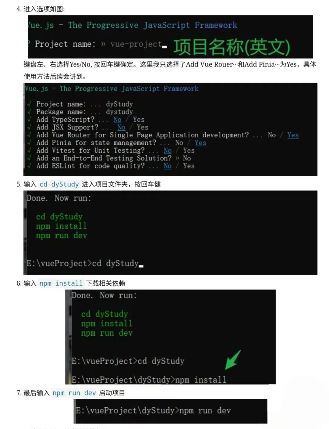 (2)进入项目目录,安装依赖并启动开发服务器。