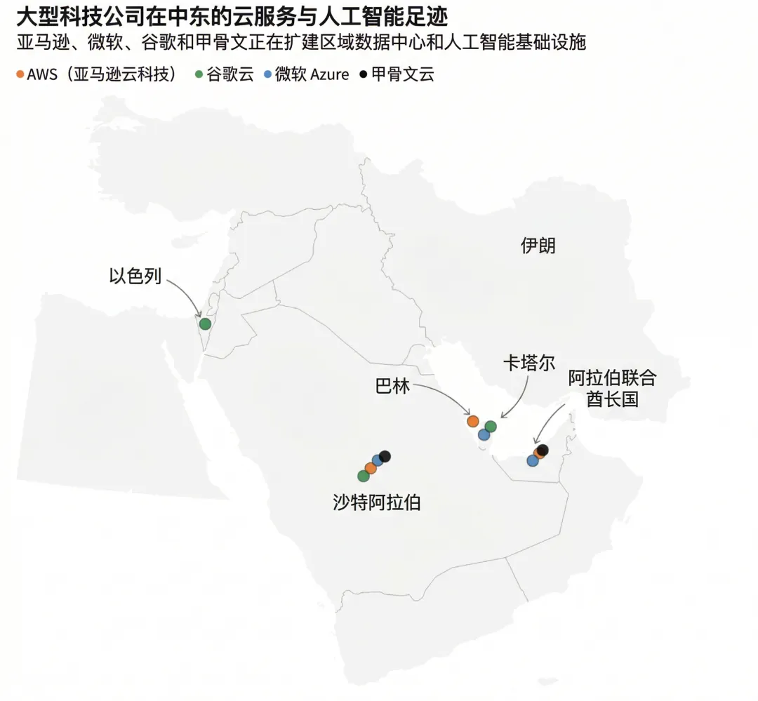 此前,微软承诺在2029年前向阿联酋投一百五十亿美元建数据中心。谷歌和甲骨文也在那边有动作。整个海湾正在从“油库”变成“机房”。