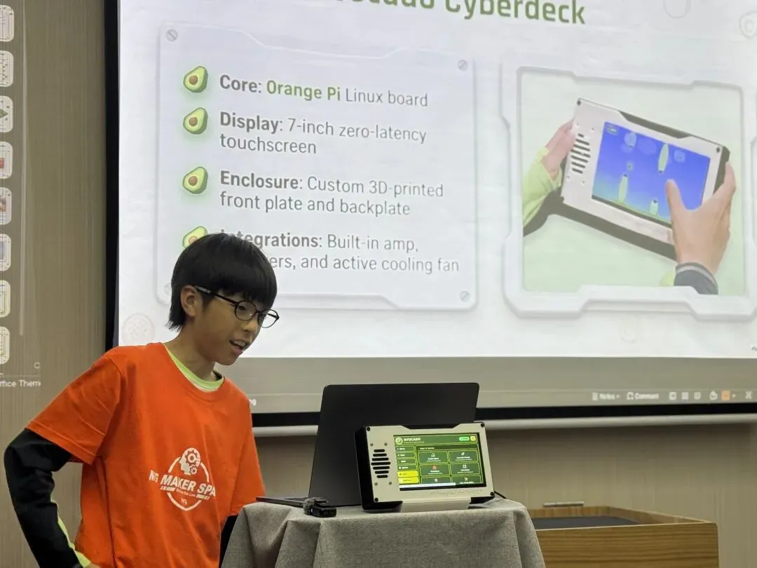 孩子们不需要精通所有底层逻辑,而是通过学习提示词工程(Prompt Engineering)“发号施令”,招募并管理 AI 产品经理、AI 程序员和 AI 营销总监等虚拟员工,协同完成香橙派 3B (Orange Pi) 与 7 英寸触摸屏的硬件点亮,指挥 AI 编写 Web 端交互 UI 与底层通信代码,3D 打印/激光切割完成 CyberDeck(桌面赛博终端)的外壳产品设计,并且利用openclaw完成一款产品的调研、研发测试、数字宣发,5天实现从部署、调试到发布的全流程实战落地。