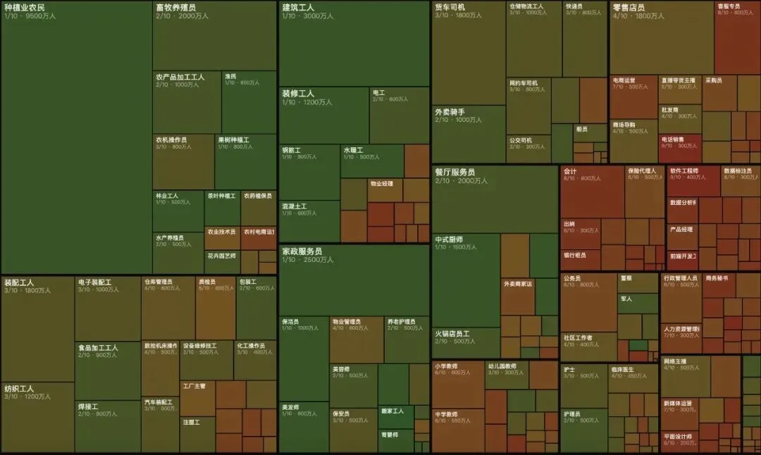换句话说,绝大多数人的工作短期内不会受到直接冲击,但确实有近一亿人站在了转型的十字路口。