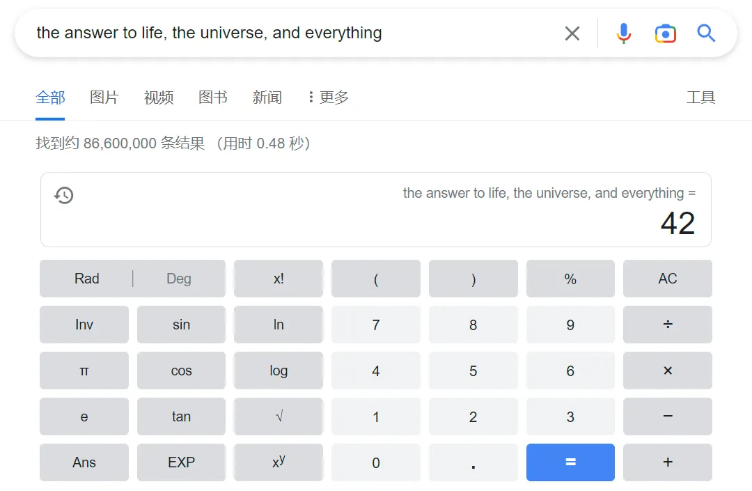 当然,作者道格拉斯·亚当斯曾解释说,选择42只是一个玩笑,并没有特殊含义。“我坐在书桌前,看着我的花园,突然间我觉得42这个数字还挺不错的,然后我就把它写了下来。”