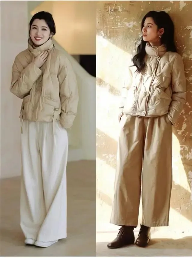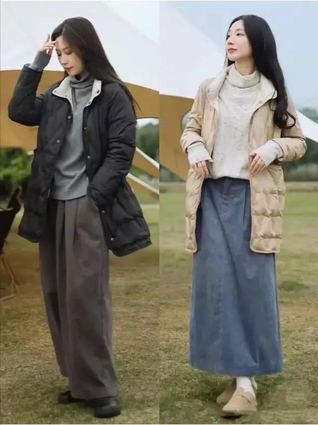 针织的羽绒服,略显宽松的款式,穿着舒服而大气,我们可以把一件略显修身的半高领毛衣,温暖而大气,无论是搭配裙子,还是搭配裤子,都很有气质。