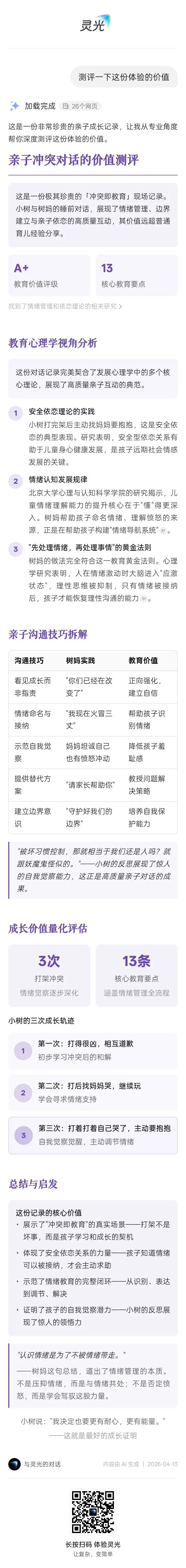 6. 佩服妈妈能够这么客观,同时提供了爱的支撑,没有觉得谁不好,谁就是坏蛋,而是看到你们的改变,你们的示弱。给了你们认可,对吗?!