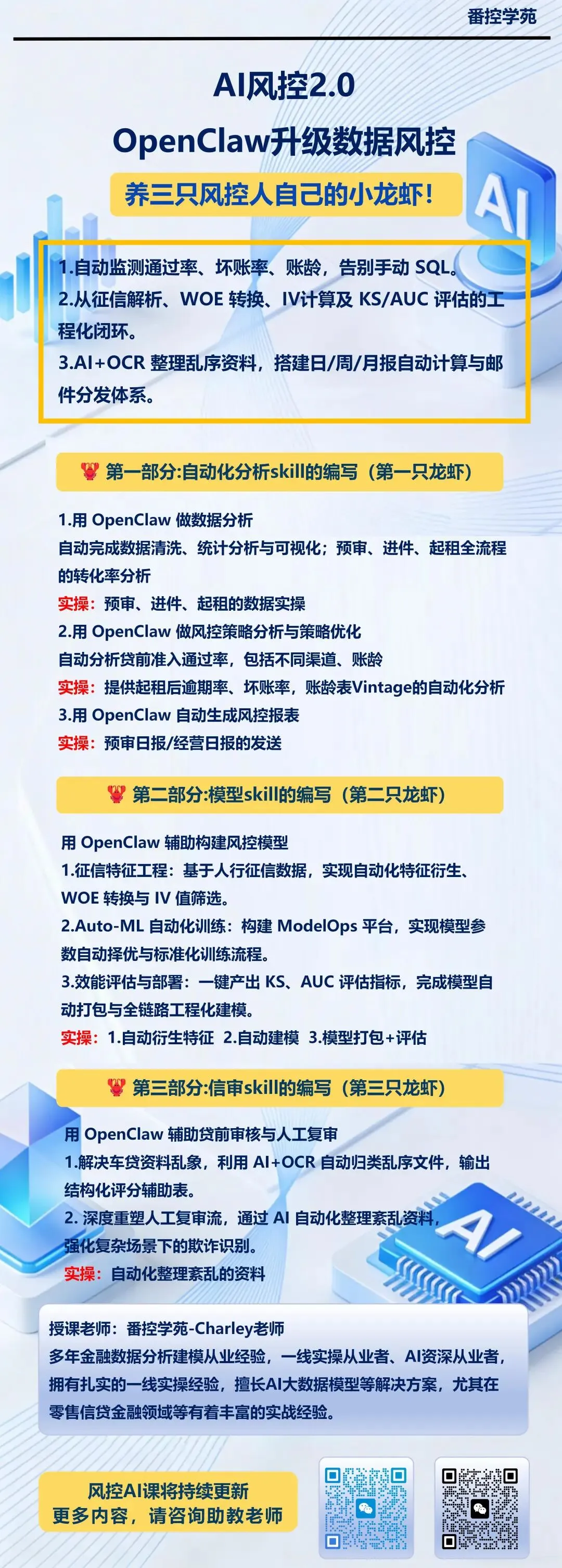 openclaw小龙虾完美上线:《AI风控2.0:OpenClaw小龙虾》|0基础(代码)人员适用