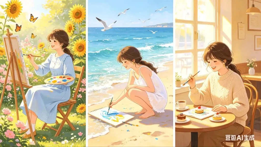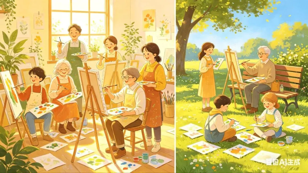 - 短视频:写生过程、AI绘画对比、作品故事