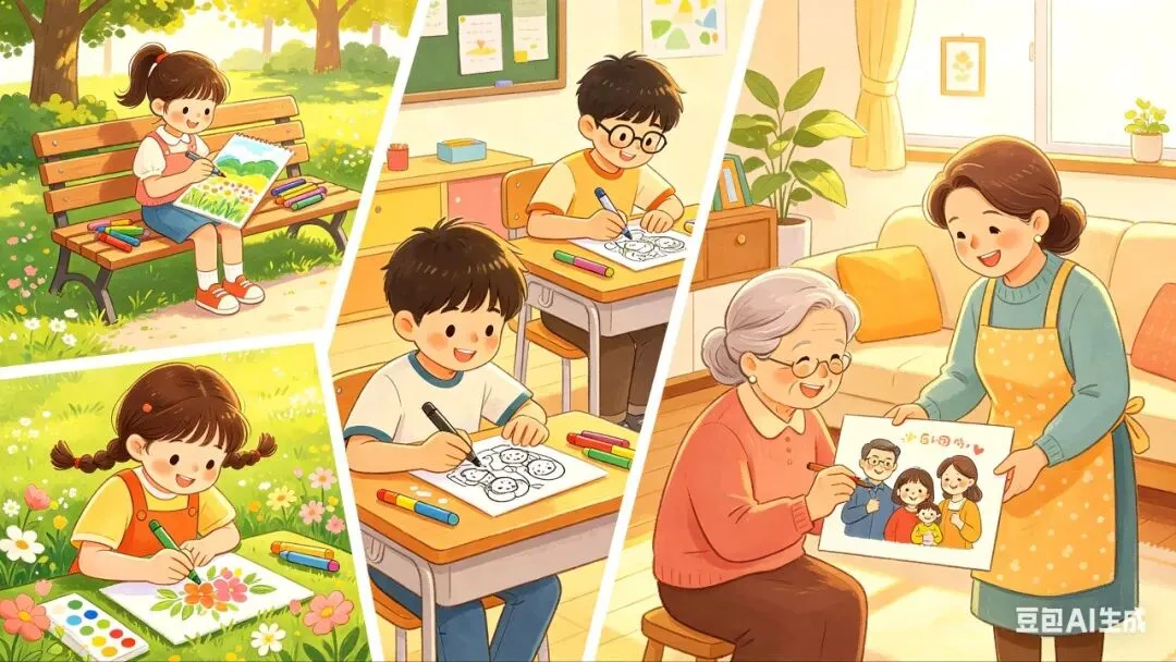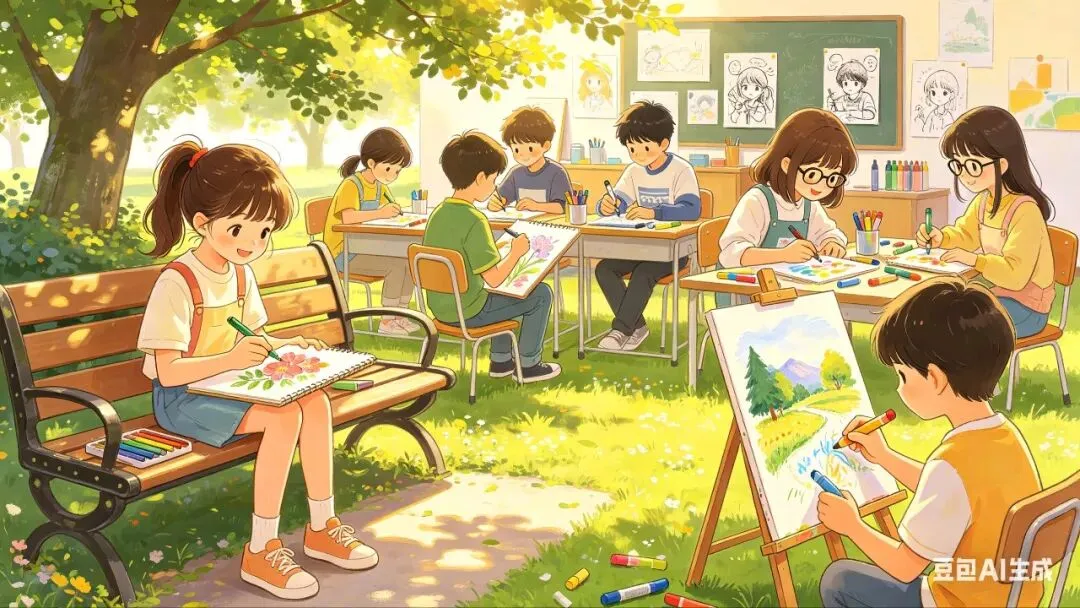- 不教复杂技法,教“观察美、表达美”