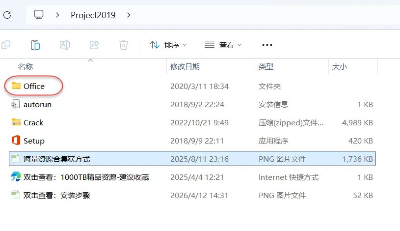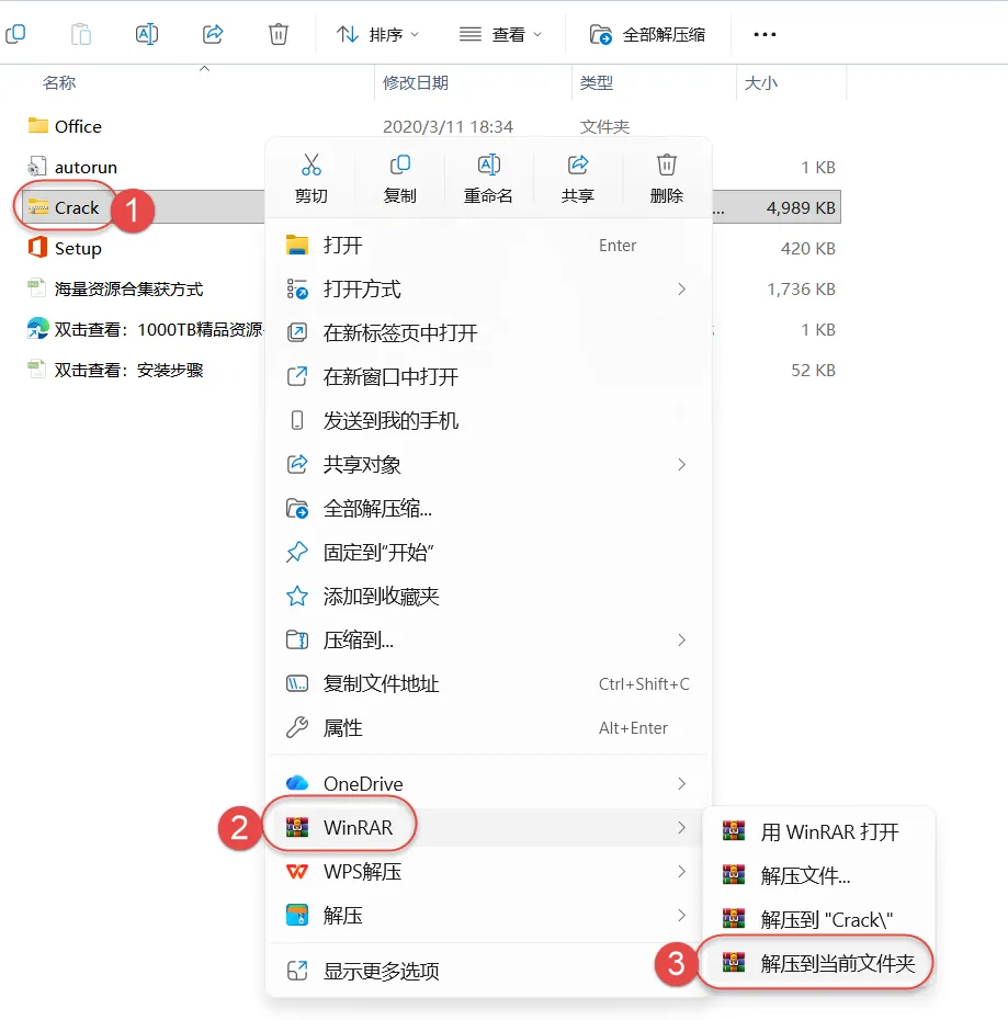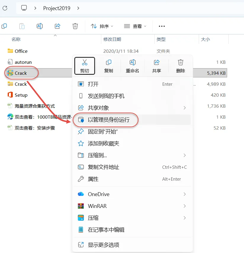 6.打开安装包解压后的"Project2019"文件夹,鼠标右击"Crack"选择"解压到当前文件夹"