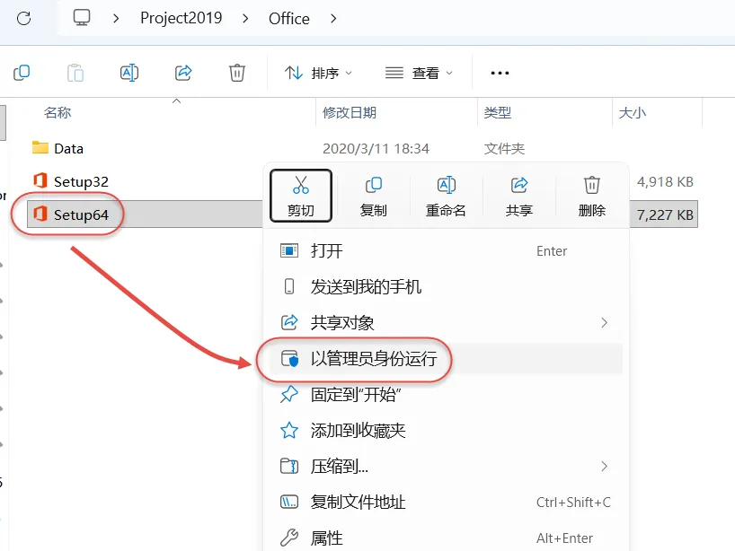 3.根据自己电脑操作系统的位数,鼠标右击"Setup64"选择"以管理员身份运行"。