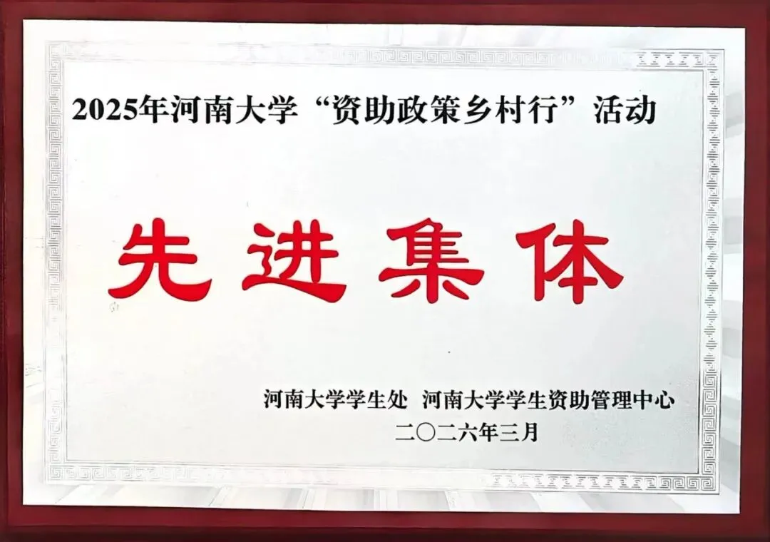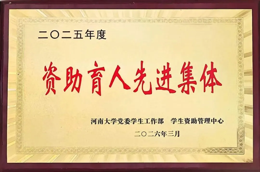 2025年度资助育人先进集体、2025年河南大学“资助乡村行”活动先进集体——资助育人,温暖护航