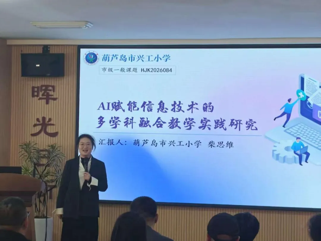兴工小学柴思维老师的《AI赋能信息技术的多学科融合教学实践研究》,以信息技术课堂为主阵地,开发了AI驱动的跨学科问题解决教学流程;