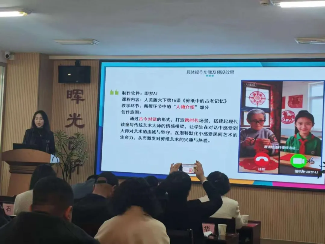 胜利小学许桂娟老师在《人工智能在小学各学科教学中的应用与研究》中,立足小学学科教学实际,以学科认知理论为基础,探索人工智能与语文、数学、科学、艺术等学科的融合机制。