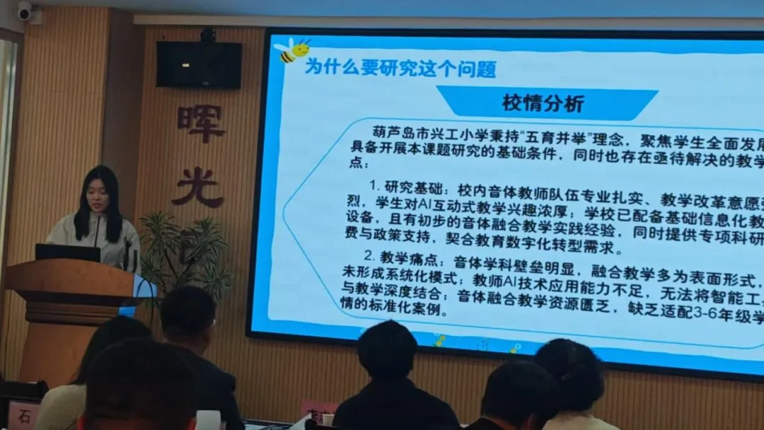 兴工小学谷东老师的《AI赋能下小学音体融合教学模式创新与探究》,利用语音识别、动作捕捉等AI技术,实现小学音体教学的深度融合与双重增效。