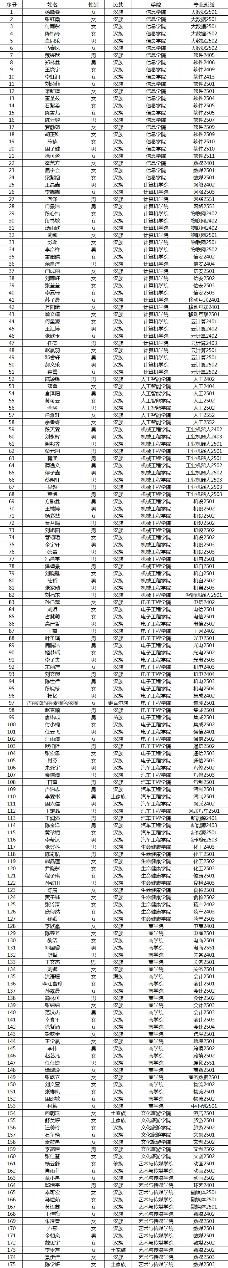 根据《中国共产主义青年团章程》《中国共产主义青年团发展团员工作细则》要求,经过本人申请、谈心谈话、团组织民主推荐和入团积极分子培养考察,经校团委预审,拟确定杨晓蓉等210名学生为2025-2026学年度第二学期发展对象,现予以公示,名单如下: