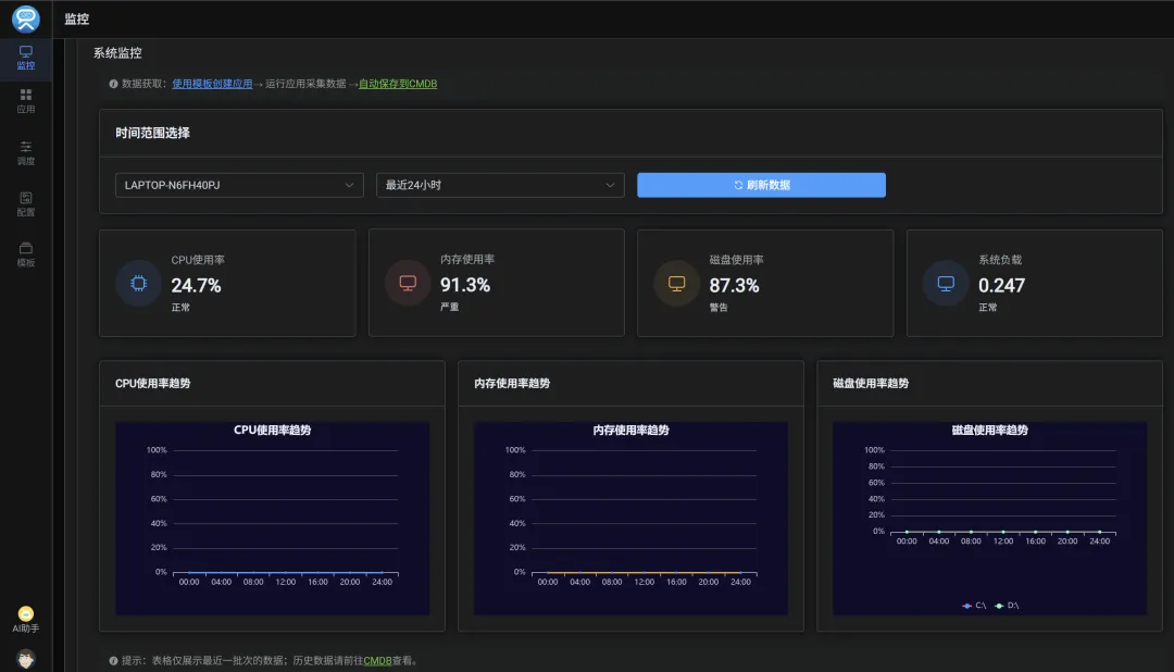 :人为操作存在疏忽、疲劳,极易遗漏核心指标(如交换机端口丢包、UPS电池老化),这些“隐形风险”可能导致生产线中断、业务宕机等百万级损失。 - 覆盖不全,数据滞后