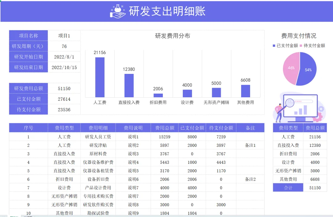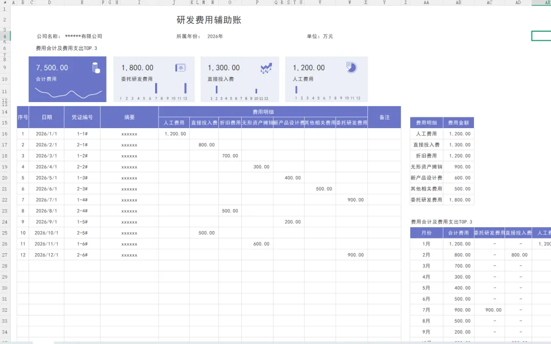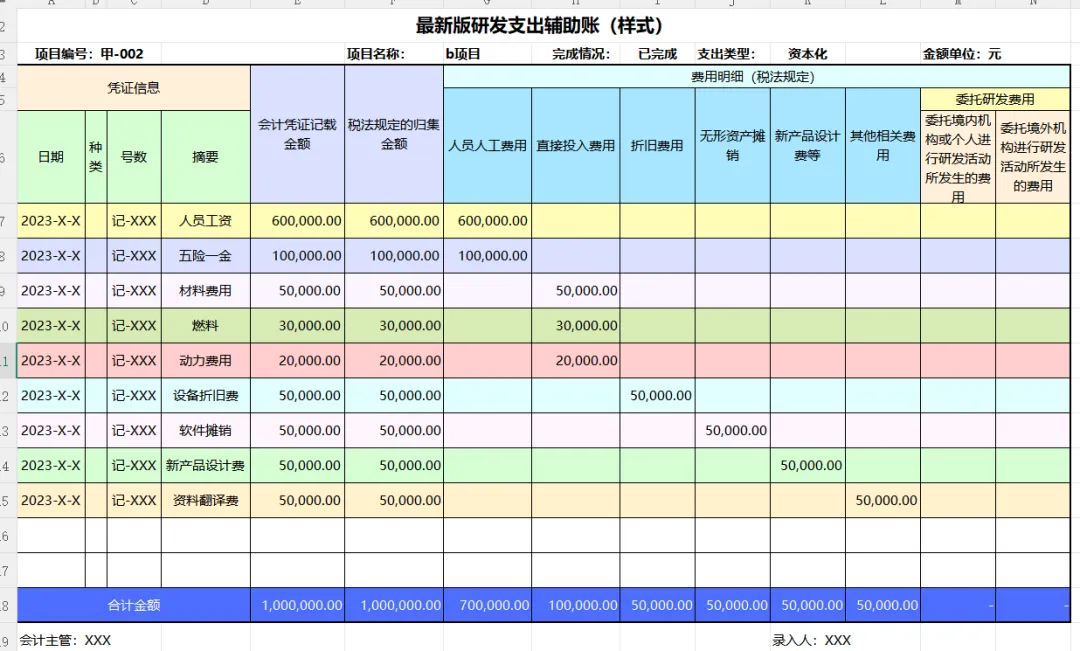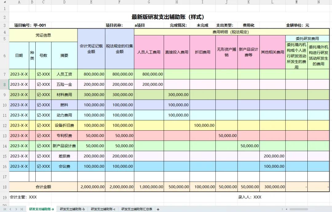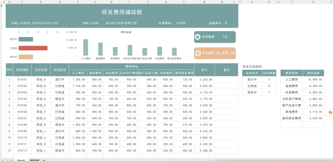 发现一套实用的研发费用支出明细表模板,内带函数公式,可编辑修改套用发现一套实用的研发费用支出明细表模板,内带函数公式,可编辑修改套用!