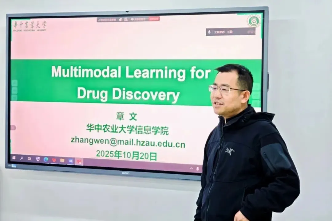 10月20日下午,第十二期“软件前沿·学术沙龙”在软件学院1002报告厅顺利举行。本期特邀华中农业大学章文教授,以《面向药物发现的多模态表示学习》为题,系统阐述了如何通过人工智能技术融合分子结构、序列与文本等多源异构数据,有效提升药物筛选、优化与安全性预测的精准度。讲座聚焦交叉学科前沿,展现了AI在医药领域的创新应用,激发了同学们对跨学科研究的浓厚兴趣。