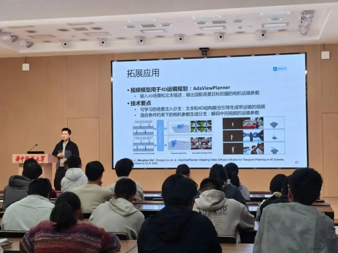 10月24日下午,软件学院“导师面对面”活动在韵苑学生活动中心名师工作室顺利举行。夏梦涵副教授以“视频生成模型及其多模态控制技术”为主题,结合其在腾讯AI Lab、快手科技的工业界研发经验,通过古画动态再现、电影运镜生成等生动案例,系统解析了AIGC技术在数字人、4D建模等领域的应用前景。现场学生就生成模型与具身智能、世界模型等前沿议题与夏老师展开深入交流。活动搭建了师生零距离对话的桥梁,有效拓展了学生的科研视野与创新思维。