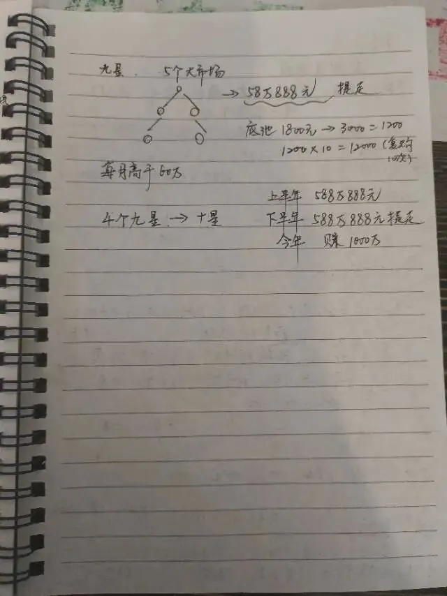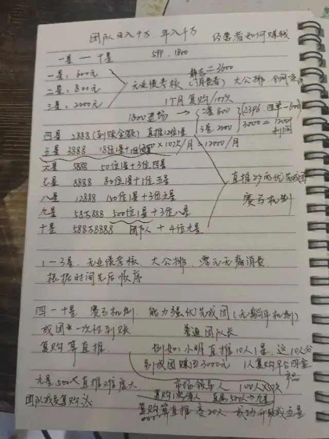里面举了个例子说,普通团队长小明,直推十个一星,每个成团就能转三千,十个人就是三万,之后每个月这些人复购,还能继续裂变,没两个月就直接升五星,又拿三千八百多的收益,一路往九星升上去,钱越赚越多。