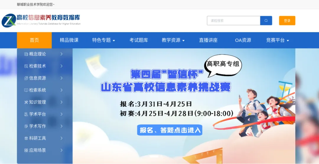4月11日 — 4月25日 | 学生报名: 学生注册高校信息素养教育数据库,登录系统进行学习和练习 |