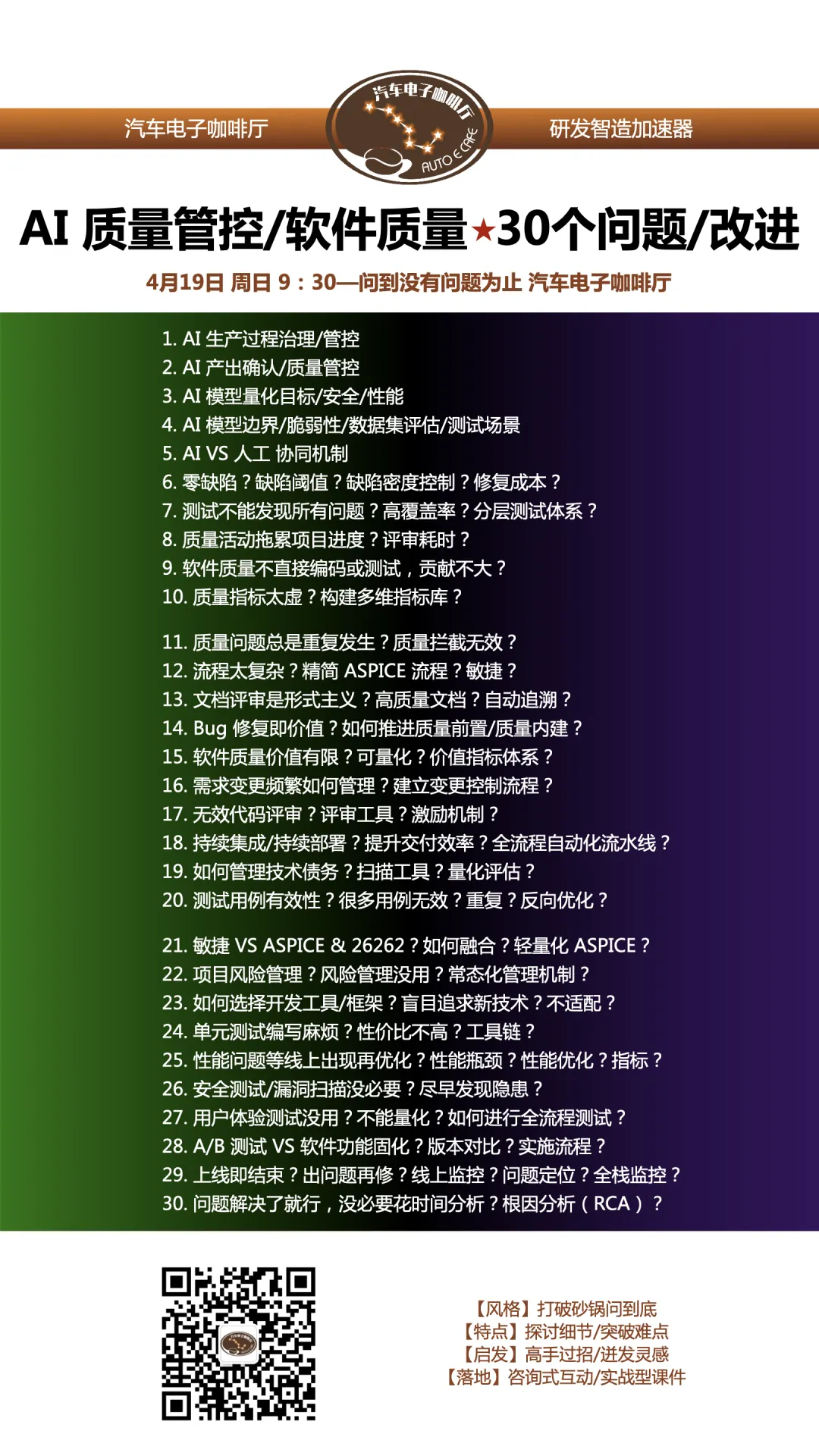 【深度课程】AI质量管控/软件质量改进/软件项目管理/国产芯片与T1技术协同/中央计算平台/48V/eFuse
