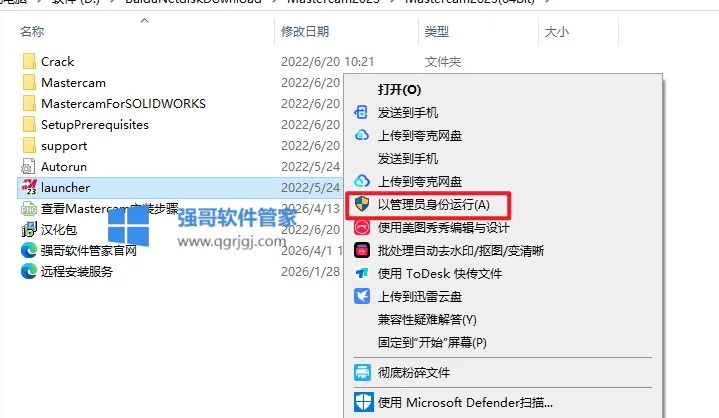 2.打开【Setup】文件夹,选中【launcher】选择【以管理员身份运行】