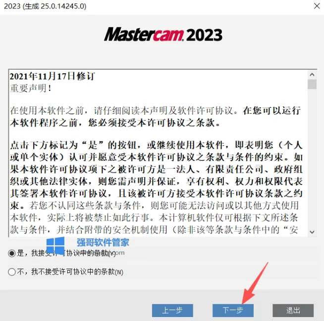 9.选择【是,……】,点击【下一步】