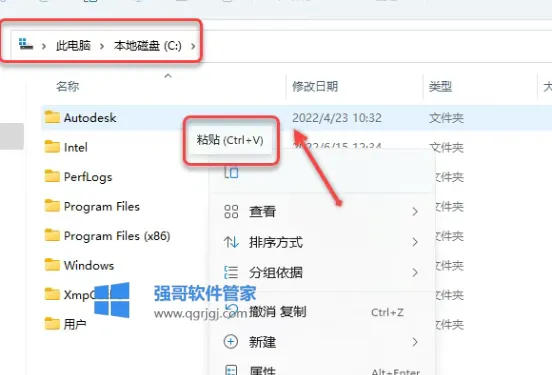 13..打开电脑C盘,右击空白处选择【粘贴】