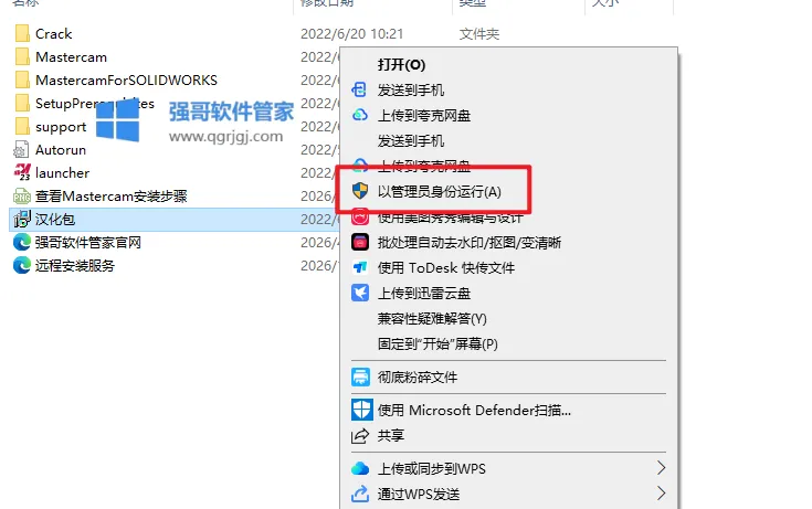 21.返回安装包,选中【汉化包】选择【以管理员身份运行】