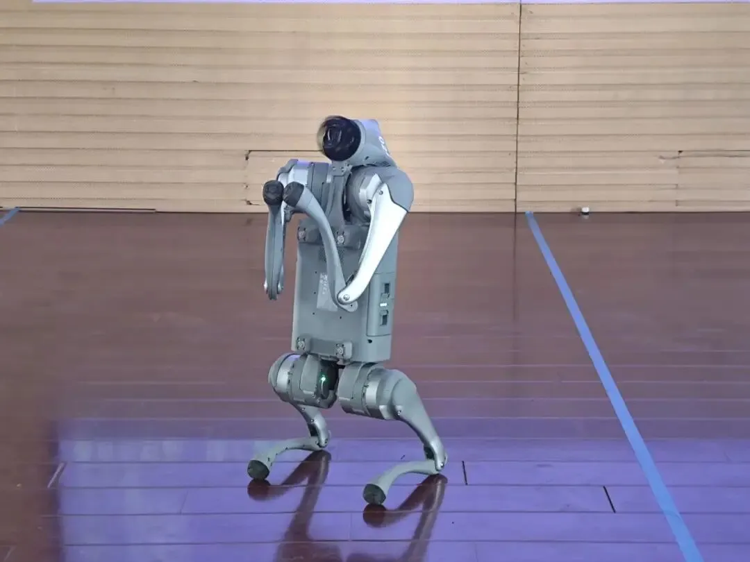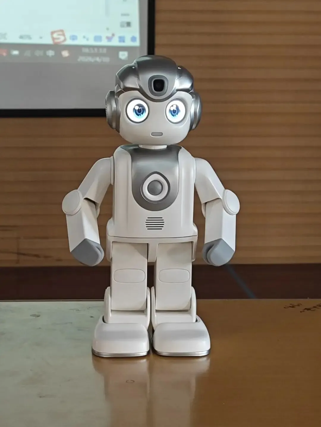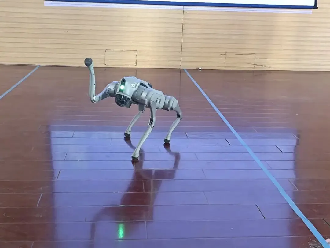 本次活动最引人注目的环节,当属智能机器人互动展示。呆萌可爱的悟空机器人与灵活灵动的机器狗依次亮相,瞬间成为全场焦点。悟空机器人带来了精彩的才艺表演,唱歌、跳舞、趣味对话,每一个动作都精准流畅,引得同学们阵阵欢呼;机器狗则展示了行走、奔跑、下蹲、转圈等灵活技能,精准完成各项指令,展现出智能科技的强大实力。