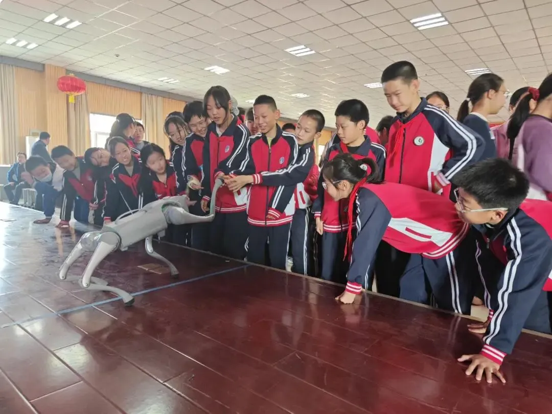 表演结束后,进入互动体验环节,同学们有序上前,与悟空机器人、机器狗近距离交流、互动。大家争相发出指令,看着智能设备精准回应、默契配合,亲手感受人工智能科技的神奇,脸上洋溢着好奇与兴奋的笑容,在亲身实践中近距离感受科技的无穷乐趣。