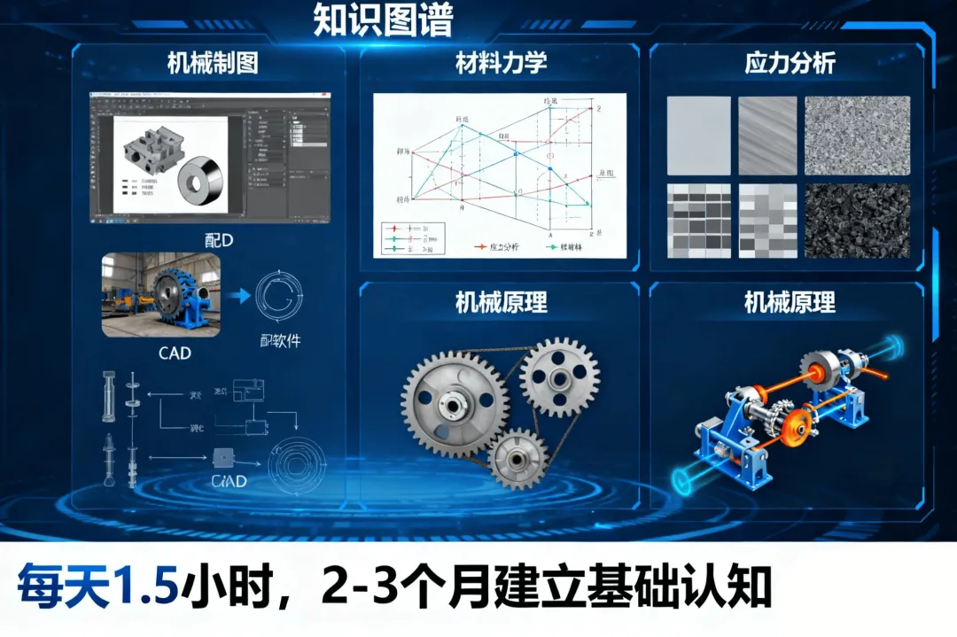 机械设计的核心是用工程思维解决实际问题,不用一上来就死磕晦涩难懂的专业书。重点攻克 3 个核心板块,高效打牢地基: