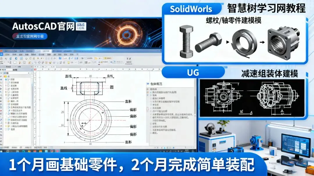 AutoCAD:作为机械制图的基础软件,优先学习它很有必要。重点掌握基本绘图命令,像直线、圆、偏移等,以及标注规范。Autodesk 官网推出了一系列 AutoCAD 操作技能支持方案,由软件研发及测试工程师授课,通过视频操作、样例演示、专家讲解,帮你快速上手基本应用与行业知识。这个阶段不用深入钻研三维功能,先把二维绘图基础打牢。SolidWorks 或 UG:SolidWorks 对新手比较友好,上手快;UG 则更适合复杂零件的设计。学会用它们绘制简单零件,比如螺栓、轴承,再到装配体,如减速器。