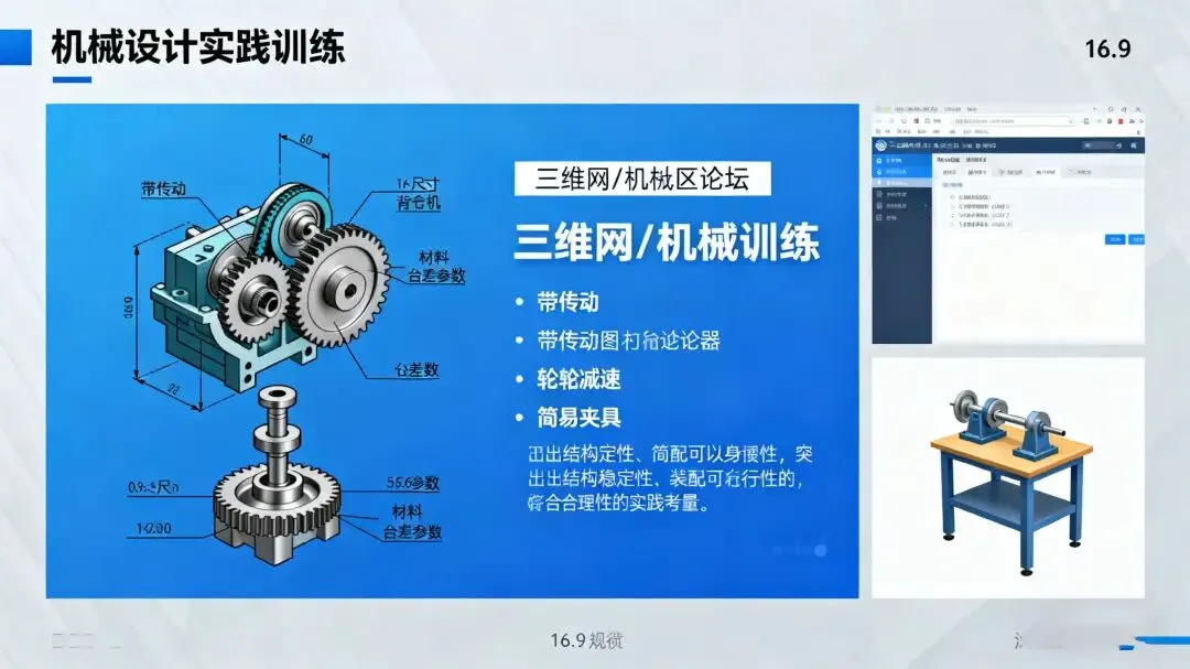 新手可以从模仿经典机械结构入手,比如带传动、齿轮减速器这类基础部件。去三维网、机械社区等专业论坛,找现成的经典图纸,逐件拆解分析:零件尺寸怎么定、材料为什么这么选、公差要求的依据是什么。拆解透了再自己复刻设计,边仿边思考优化空间。