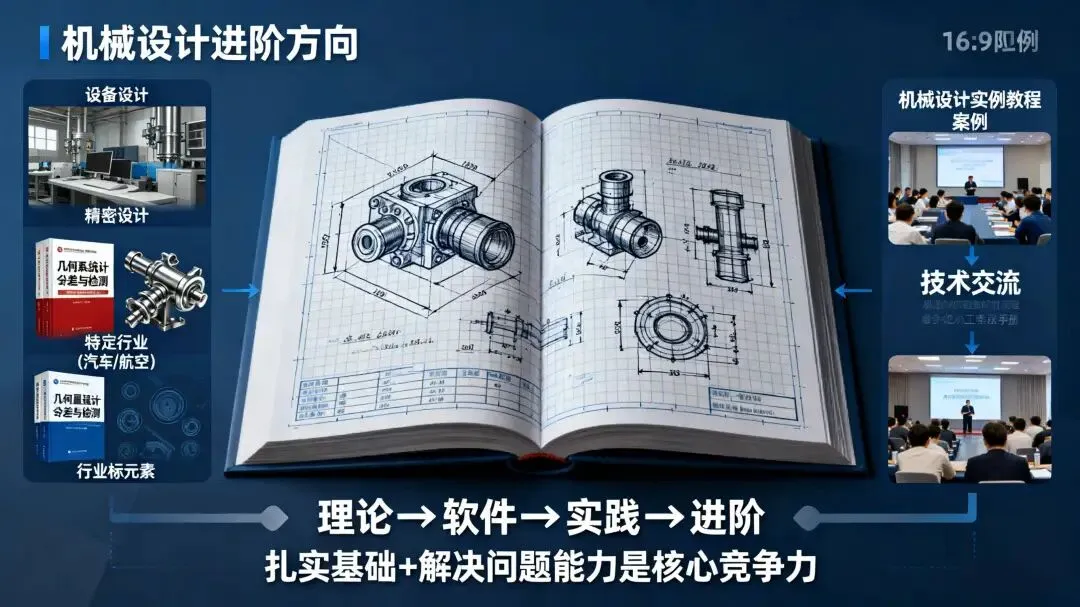 设备设计方向:重点研读《机械系统设计》,吃透生产线布局、设备选型、系统集成等核心内容,培养从整体视角规划设计机械设备的能力。 精密设计方向:补充《几何量公差与检测》相关知识,深化对公差配合、精度控制的理解,满足精密机械的设计要求,提升设计的精准度。 特定行业方向:若瞄准汽车、航空等领域,需针对性学习行业专属标准。可以参考行业权威书籍,多在专业论坛和前辈交流,及时获取最新设计规范和行业动态。