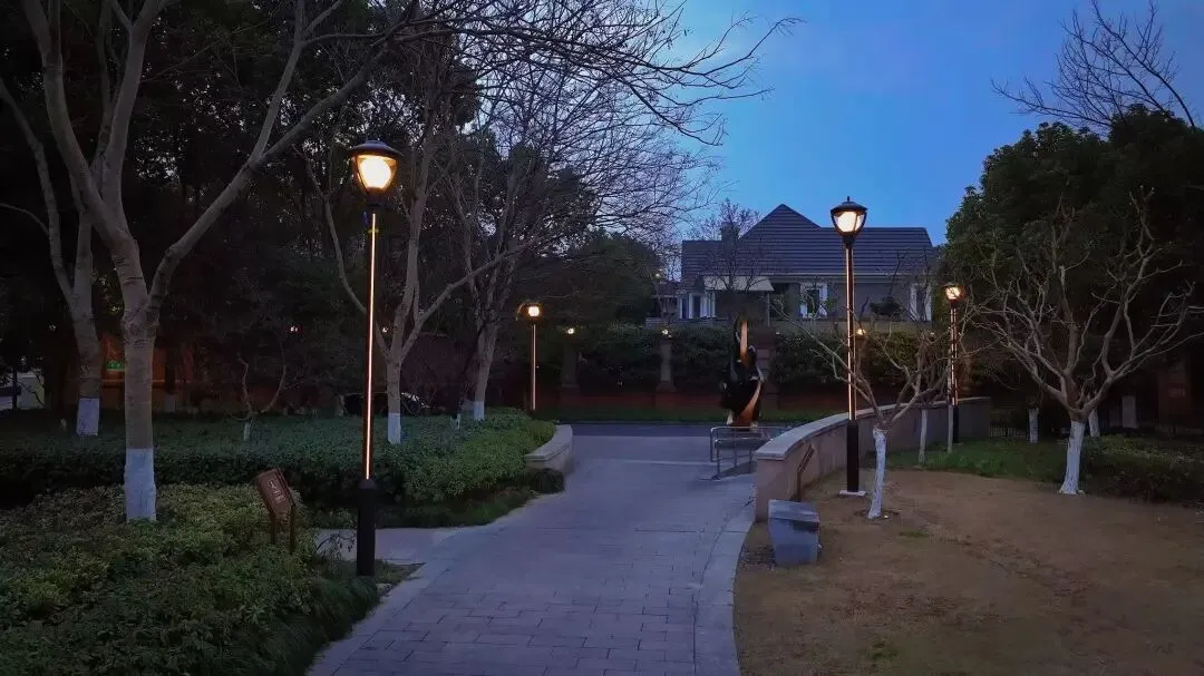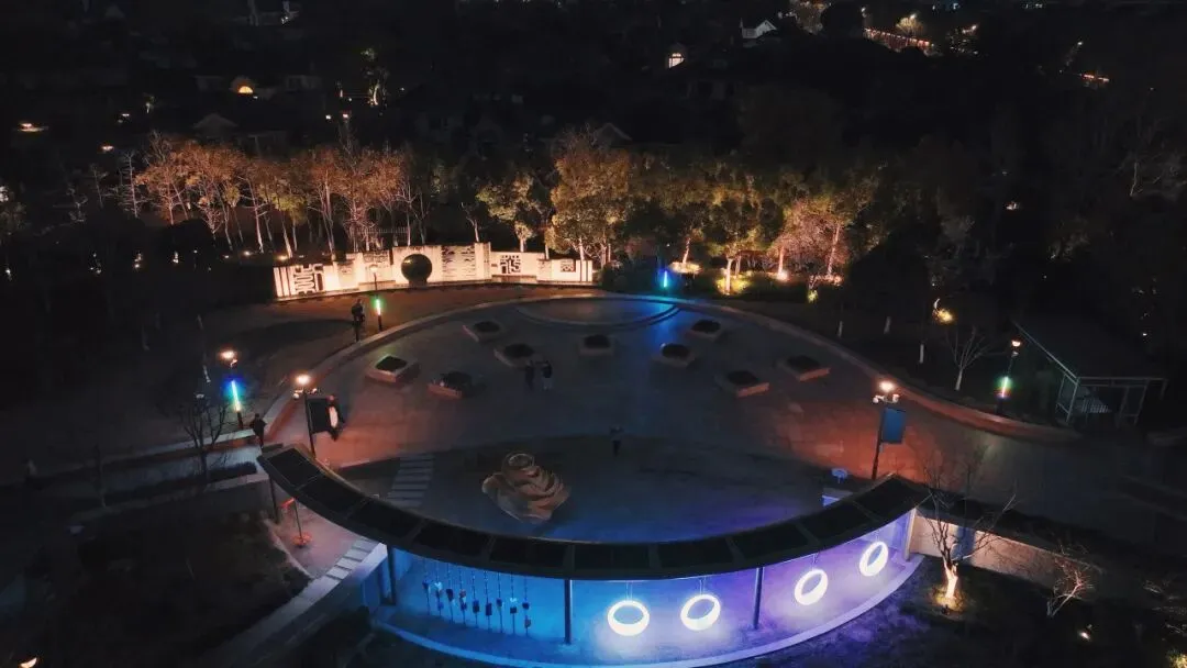在公园开阔的活动区,灯光又“活”了起来。两台定向音响、四杆庭院灯带 ,能随着音乐律动变换色彩。奇妙的是,音乐只在特定区域可听见,走出这个范围便悄无声息。这种设计巧妙解决了广场舞噪音扰民的难题。
