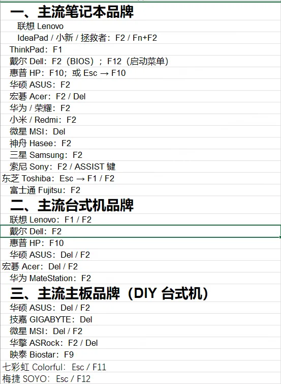如何进入BIOS可以参考下面我给大家找的这张图,方便你来进行设置。