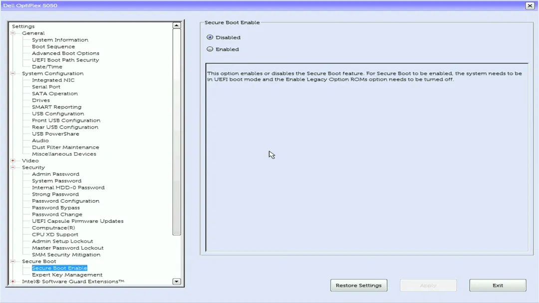 关闭了设置之后保存配置,通常是按F10进行保存,我的主机是Dell,所以是点击Apply之后再按Exit。