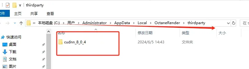 如果Local文件夹中没有OctaneRender文件夹,那个新建一个OctaneRender文件夹;然后再在OctaneRender文件夹中新建一个“thirdparty”文件夹;然后把Crack文件夹中的“cudnn_8_0_4”复制粘贴到thirdparty文件夹中。