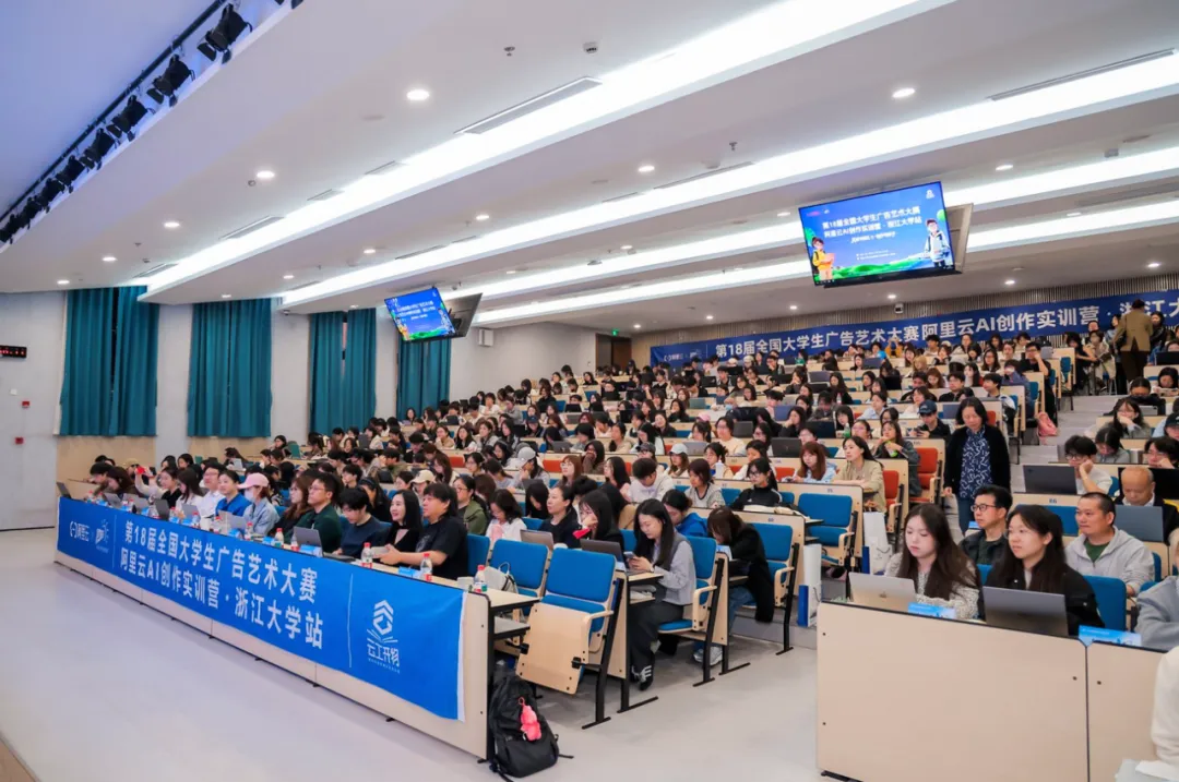 4月11日上午,由全国大学生广告艺术大赛组委会组织,大广赛浙江赛区组委会主办,阿里云联合主办,浙江大学传媒与国际文化学院承办的“第18届全国大学生广告艺术大赛·阿里云AI创作实训营(浙江大学站)”在浙江大学紫金港校区北2教学楼顺利举行。