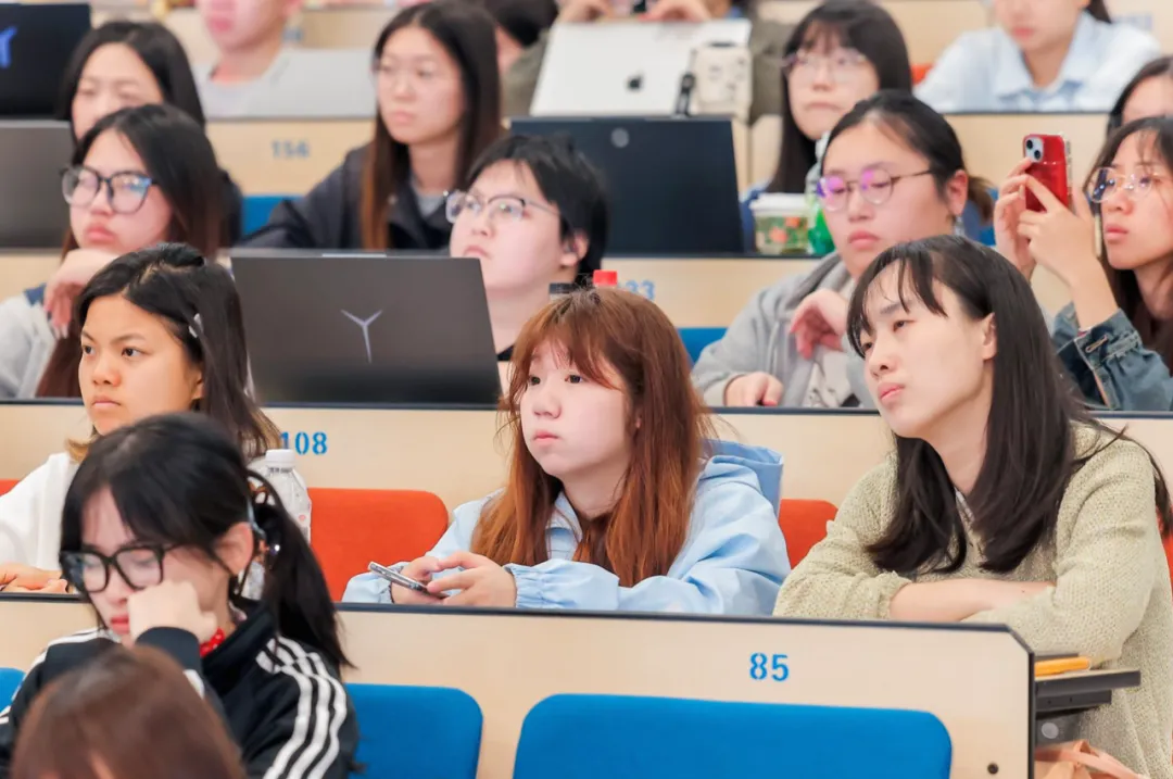 在自由提问环节,现场气氛推向高潮。针对同学们关于“如何消除AI视频塑料感”、“处理画面小字乱码”以及“AI应用除错”等实际创作痛点,专家团队给出了详实的实操建议:建议充分利用“多图参考”融合功能并精细调优提示词;对于排队耗时问题,可通过搭建个人专属算力服务器解决。此外,专家们还就小程序部署、工具差异化优势及职业发展等话题与师生进行了深入浅出的交流。