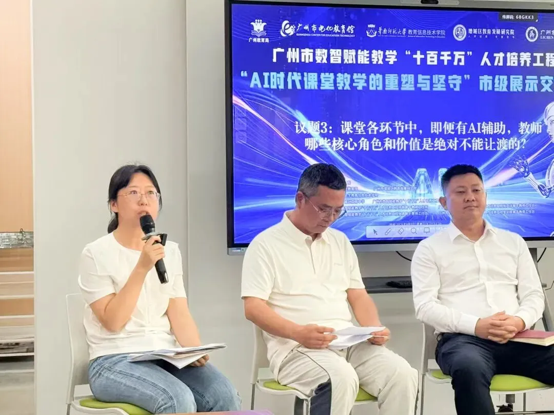 如果说课例是“术”的展示,那么圆桌论坛则是“道”的深入探讨。本次论坛围绕AI时代课堂教学中教师角色的“重塑与坚守”这一核心议题,立足智能技术赋能教育的时代背景,聚焦教学实践中的核心困惑与发展方向,在多元交流碰撞中凝聚清晰共识,以前瞻视角深度思辨,既明确教师在新技术环境下的角色转型路径,也坚守教育育人本质与专业初心,为新时代教师专业发展提供了有力指引。