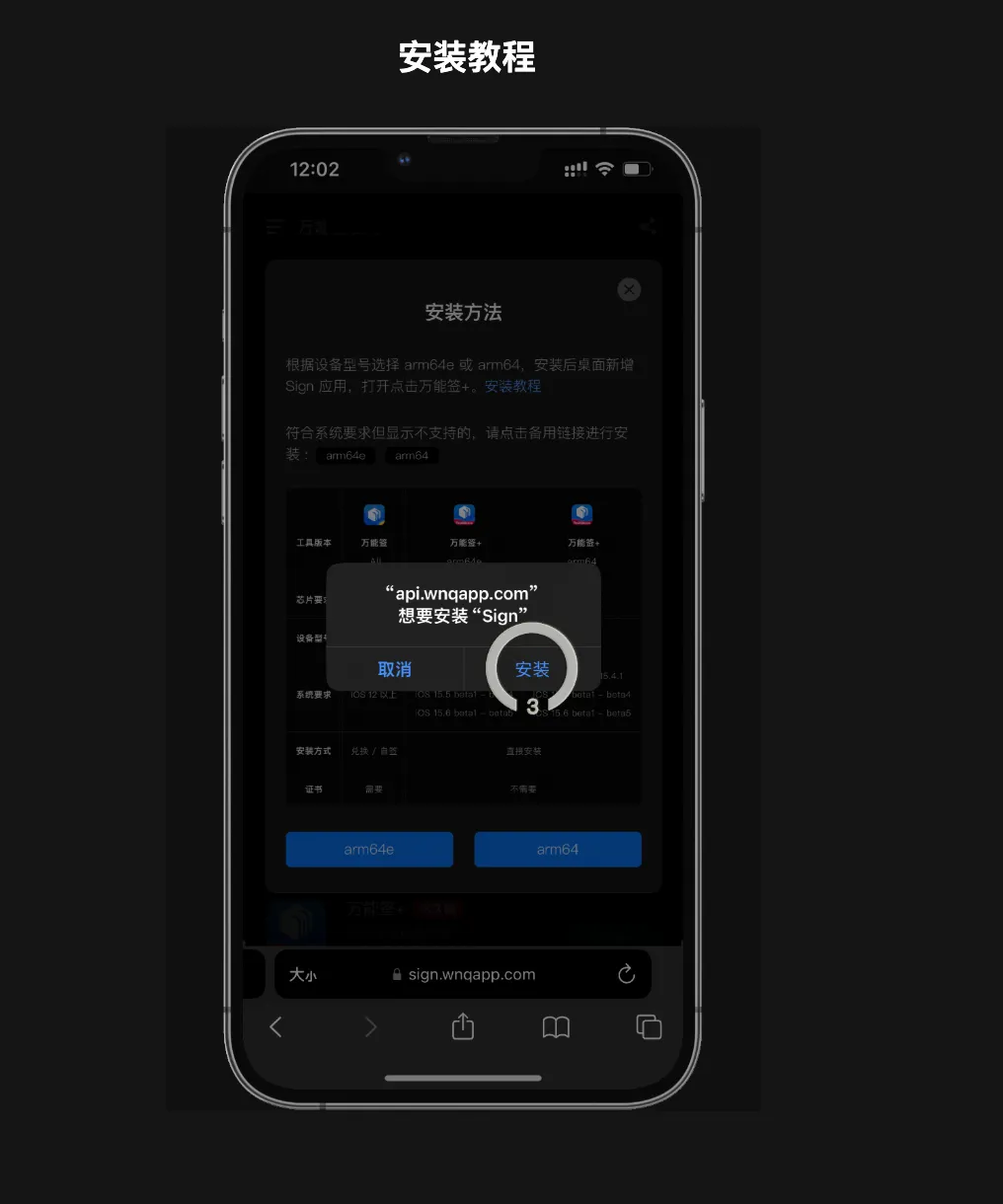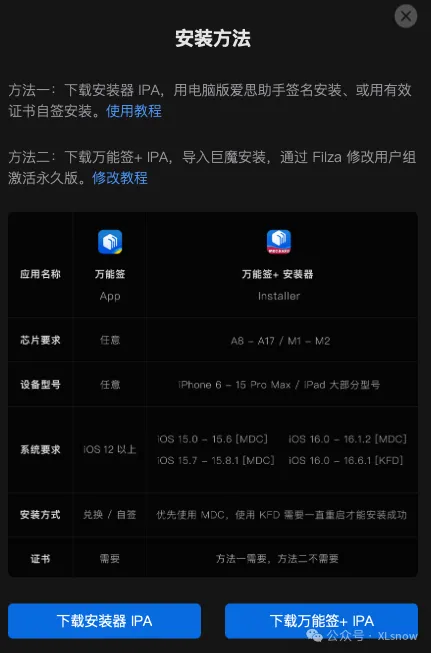 方法一:下载安装器 IPA,用电脑版爱思助手签名安装、或用有效证书自签安装。
